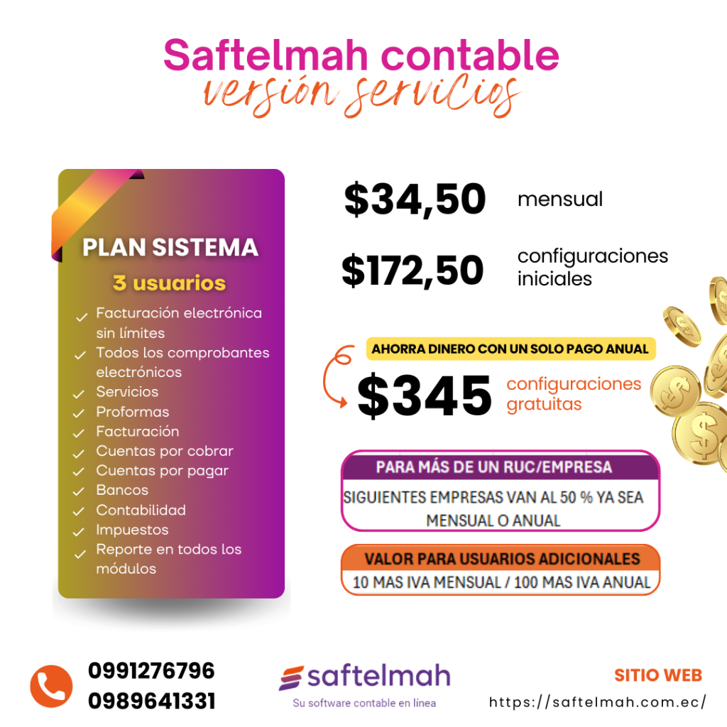 El Software contable Ecuatoriano con facturación electrónica SAFTELMAH es la solución para la administración y tributación de su empresa